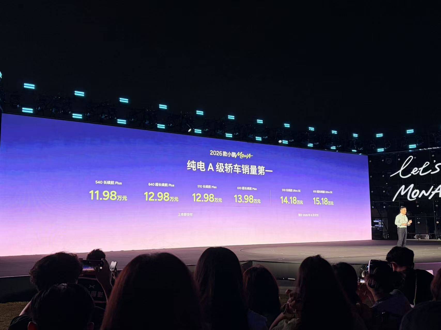 4月2日,2026款小鹏MONA M03上市,小鹏MONA M03代言人&车主欧阳娜娜到场助阵。作为2025年A级纯电轿车销量冠军,小鹏MONA此次迎来全方位升级,共推出6款版型,官方指导价11.98万元-15.18万元,其中Plus和Max版上市即交付,Ultra SE版预计8月开启交付。