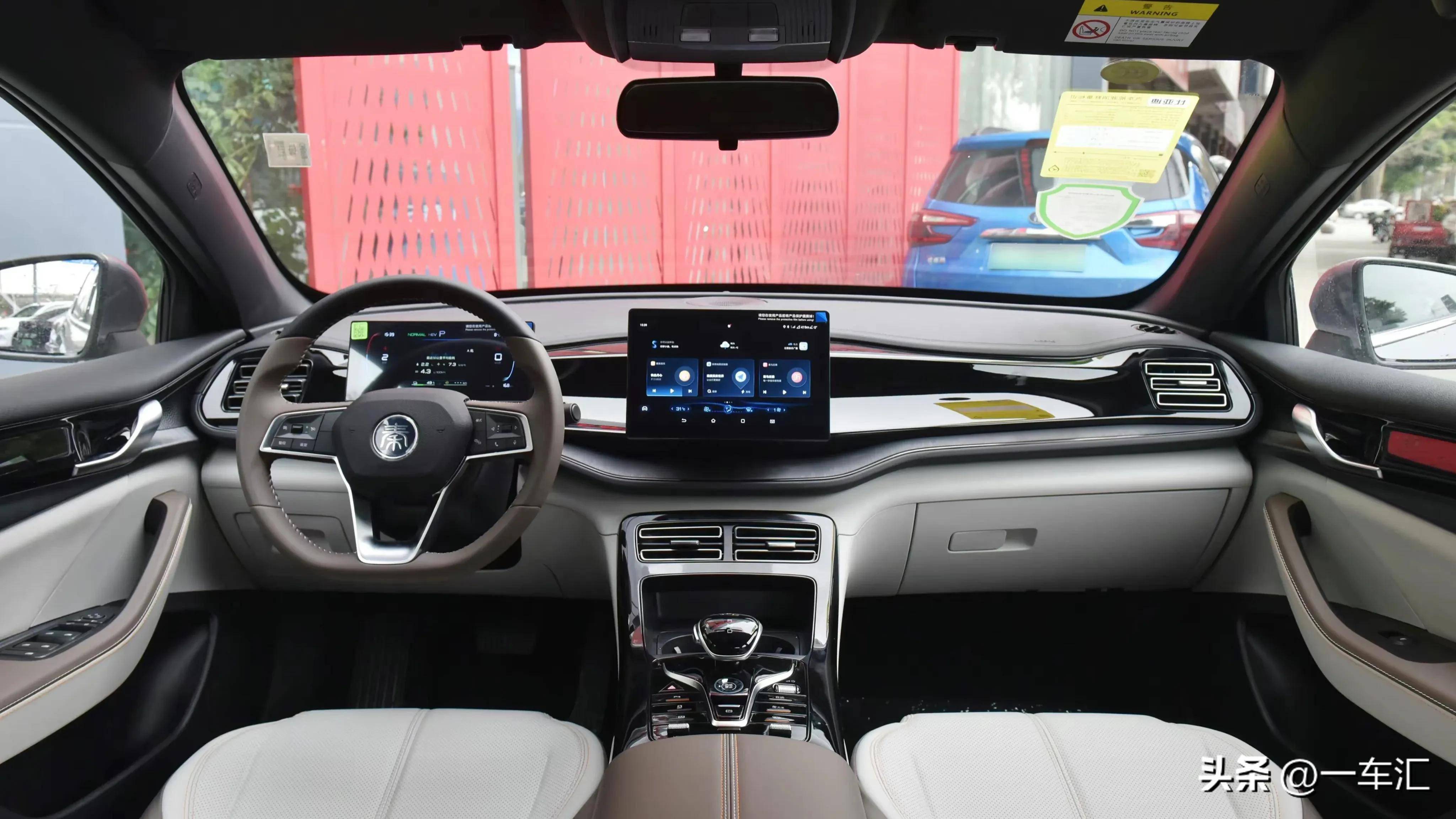 内饰方面同样延续了比亚迪现阶段家族式设计风格,中控台造型饱满简洁,起伏的线条配合表面黑色烤漆和软质包覆,整体质感比起十几万的合资品牌车型也丝毫不落下风。上深下浅的内饰配色,看起来更具居家气息,细节处辅以棕色皮革,既显档次也相对更耐脏一些。