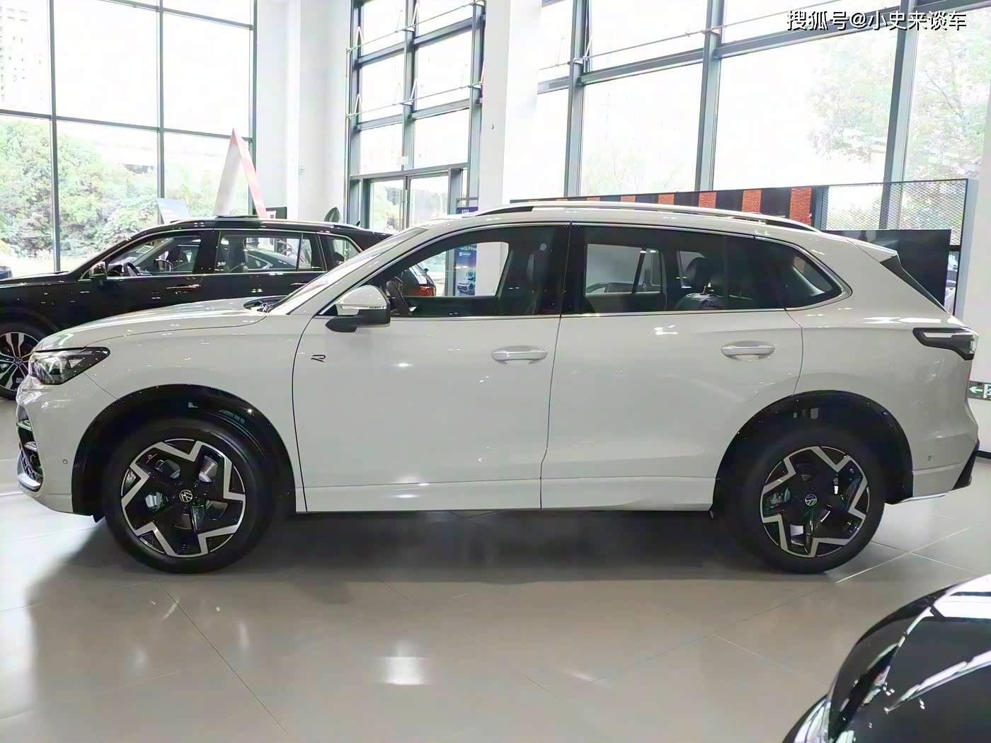 再来看车身侧面部分,车身侧面延续了途观系列的经典比例,车长4735mm、轴距2791mm,配合20英寸五辐式轮毂,展现出蓄势待发的姿态。隐藏式门把手与悬浮式车顶设计降低风阻系数,而R-Line版本独有的侧裙黑化处理则强化运动属性。车窗镀铬饰条与车身同色设计,既提升豪华感,又避免传统镀铬件的突兀感。这种设计哲学在细节处体现:例如后视镜集成转向灯与摄像头,兼顾功能性与美观性。